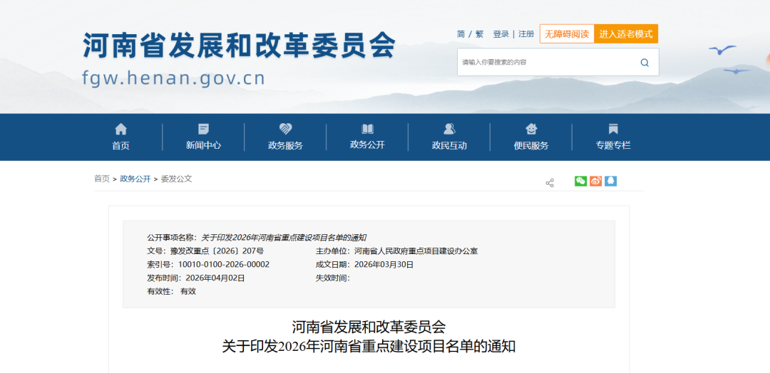 涉氢项目9个,2026年河南省重点建设项目名单发布